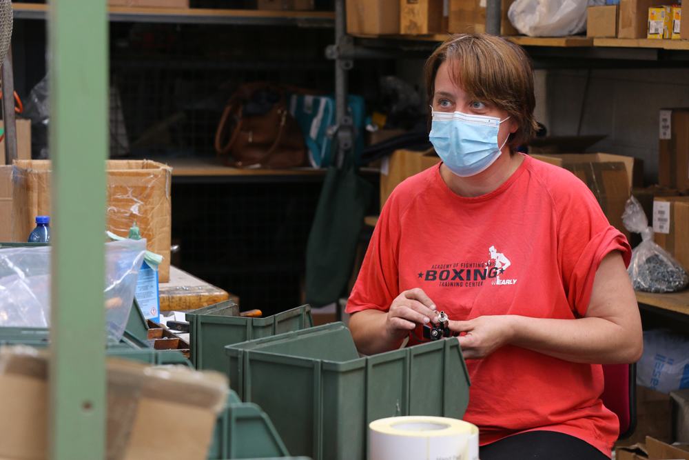 Dentro allo stabilimento in via Sesto, davanti al centro commerciale Cremona Po, ogni giorno ruotano ai tavoloni e alle macchine circa 30 persone. Venti dipendenti, di cui 2/3 hanno una diagnosi di svantaggio per malattia mentale, dipendenze o trascorsi penali, e dieci in tirocinio formativo lavorativo. Assemblano e confezionano a mano o con macchinari specializzati. “Gli operai senza diagnosi – spiega Lorenzo – lavorano insieme agli altri. Non sono figure educative, ma hanno un occhio attento all’accompagnamento e all’accoglienza delle persone più fragili”.